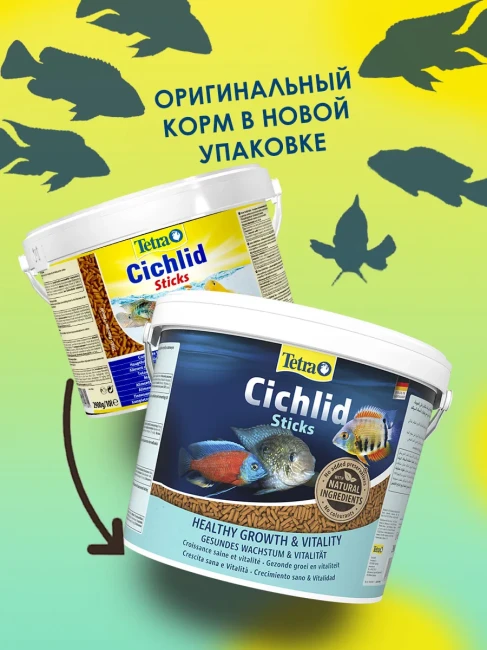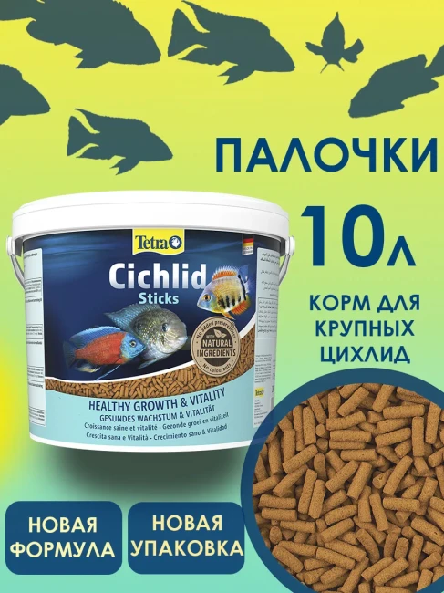 Идеально подходит для ежедневного кормления цихлид и других крупных декоративных рыб в аквариуме.