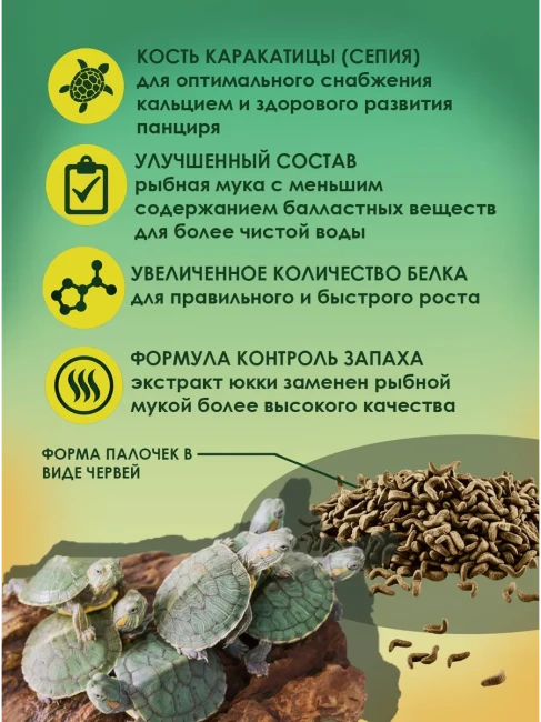 <tableНазначение Tetra ReptoMin 10 л полноценный корм для водных черепах и других плотоядных рептилий Описание Основной полноценный корм для водных черепах в виде палочек.содержит все жизненно важные элементыоптимальное содержание кальция для роста костей и укрепления панцирявысокое содержание легко усваиваемых протеинов Возрастная группа без ограничений Дополнительное фото